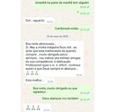 Somos o mais breve possível em todas as manutenções para entregar os equipamentos funcionando com agilidade. Alguns serviços realizamos no mesmo local e outros mais específicos, levamos as máquinas para nossa oficina.